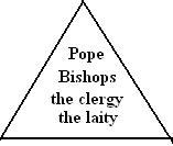 There the real power is at the top and it is shared according to one's place on the ladder up or down the pyramid. The laity are seen as on the lowest rung of the ladder, and reform or progress is understood as transfer of power, by means of a peaceful or forced "liberation" of lay people from clerical domination, so that they too are free to work upwards to "commanding" positions.